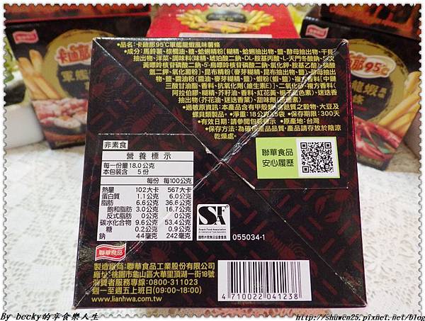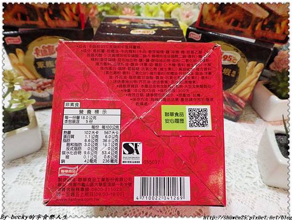 小包裝背後也是有產品品名及營養成份標示&產品履歷QR CODE,而有效期間也放在同一處。