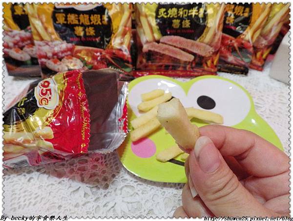 打開一小包的軍艦龍蝦風味薯條,整個味道撲鼻,很濃厚的鮮香味而炙燒和牛風味薯條則是有燒烤香氣。